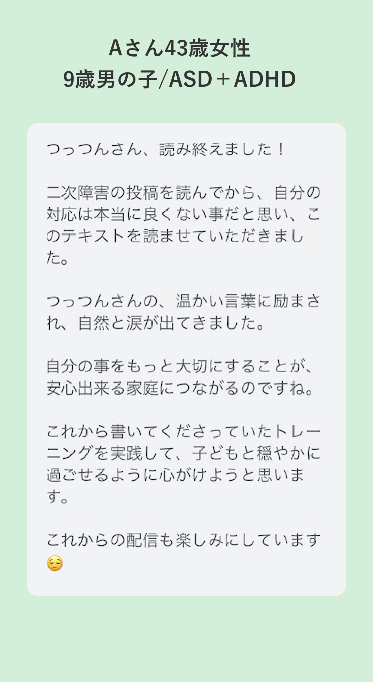 当事者だからこそ伝えられる“子ども目線の理解”を大切にしながら、「家庭で本当に使える関わり方」を届けている。